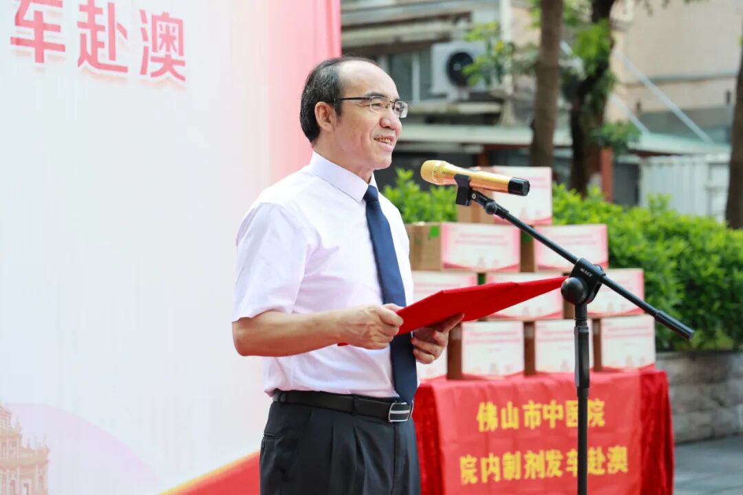 “这不仅是药品的流动,更是搭建起连接佛山与澳门的‘健康桥梁’!”蒋开平在致辞中表示,此次制剂赴澳是两院自签署合作协议、共建“中医骨伤科传承工作室”以来的又一成果。他指出,本次跨境使用的伤科黄水和三七化瘀丸两款制剂,凝聚了佛中医几代人的智慧与临床心血,其疗效历经数千万患者亲身验证。其中,伤科黄水更是荣获广东省医疗机构制剂“岭南名方”孵育品种。“能让这些制剂服务澳门市民,我们深感自豪,也坚信它们会为澳门同胞的健康贡献‘佛中医力量’。”